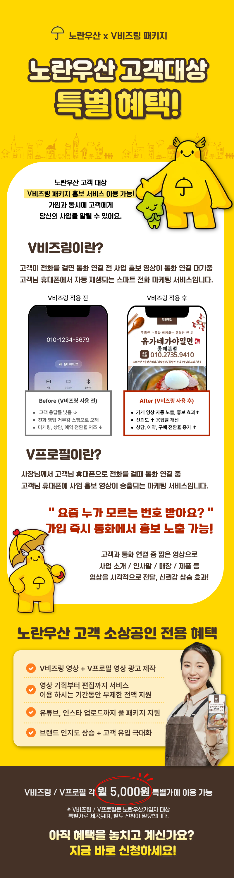 지금 가입하신 사장님께 V비즈링 영상을 무료 제작해드립니다!